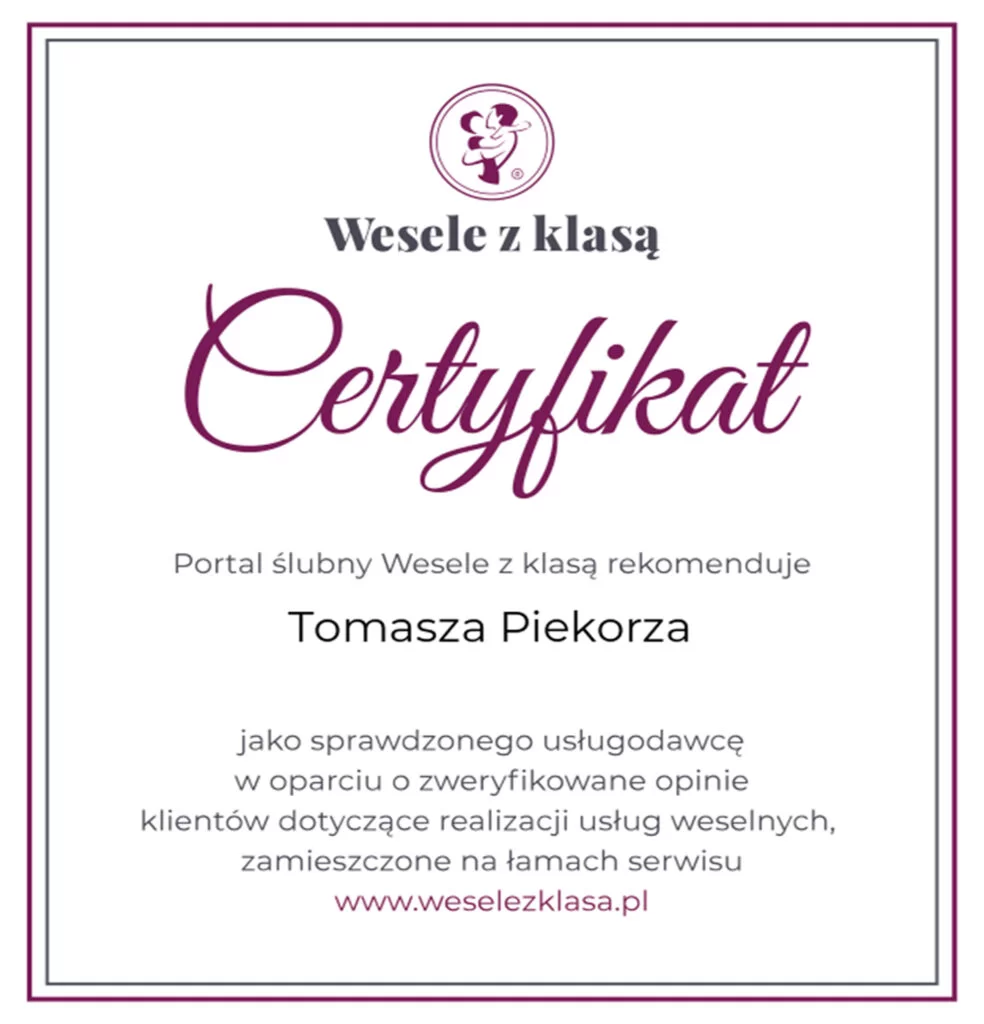 • Zostałem wyróżniony jako najlepszy profesjonalista w kategorii fotograf śląsk od portalu ZANK YOU WEDDINGS